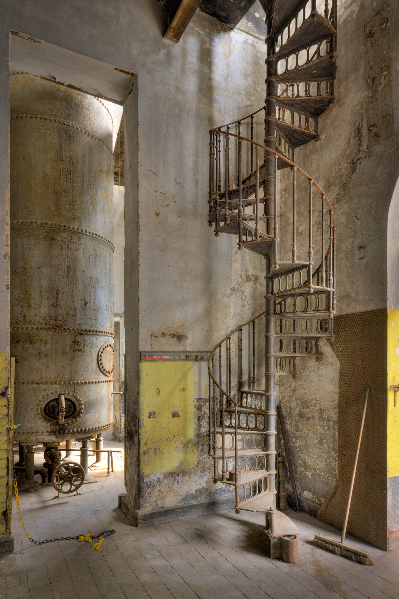 Ganze 7 Stunden hielt ich mich auf dem Gelände auf, und hatte wahrscheinlich nicht einmal die Hälfte der gesamten Fertigungsanlage betreten. Die Motive musste ich jedoch zuerst wie bei einer Schnitzeljagd zusammen suchen. Lange, leere Hallen waren zu durchqueren, um das nächste Motiv, in einem versteckten Nebenraum zu entdecken. Das hauseigene Kraftwerk erstreckte sich über 9 Ebenen, für Industrie-Puristen das reinste Festival. Mich begeisterte im Kraftwerk das vagabundierende Restlicht, was entlang der rostenden Ventile und Zahnräder schmiegte . Sogar ein Klärwerk gehörte in etwas Abstand zur Anlage. Hier roch es so auffällig nach Chlor, dass man vermuten konnte, das große Becken sei noch in Betrieb.